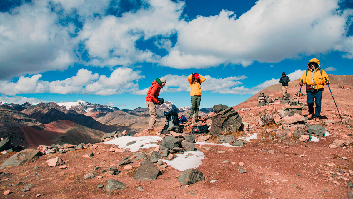 Today, after breakfast, we’ll start with a four-hour hike among the mountains and colorful glacial lakes. After lunch at Puka Mocco, we’ll continue trekking through the Andes to the Ccampa Pass, where we will conduct an Andean ritual with sacred coca leaves before continuing on to our campsite for the night.