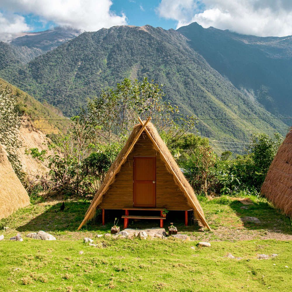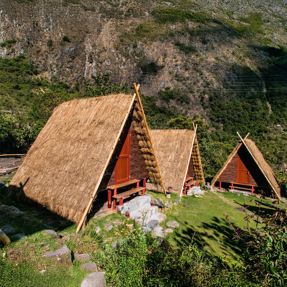 Our Andean Huts camp, true to the spirit of our ancestors, honors the deep connection with Pachamama (Mother Earth) and the Apus (sacred mountains). Built with natural materials from the surrounding environment, the huts blend harmoniously into the landscape without creating visual impact. Set among lush green mountains and rivers flowing over stone, they offer an authentic refuge beneath the endless glow of the stars.
