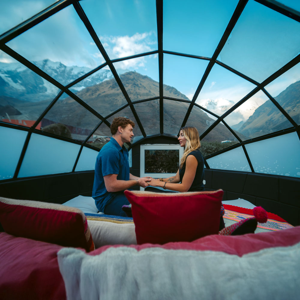 Once you’ve remarried, it’ll be time for a delicious lunch followed by an afternoon of relaxing in the mountains. Spend the evening gazing up at the Andean constellations and enjoying a romantic dinner before settling into your igloo for the night.