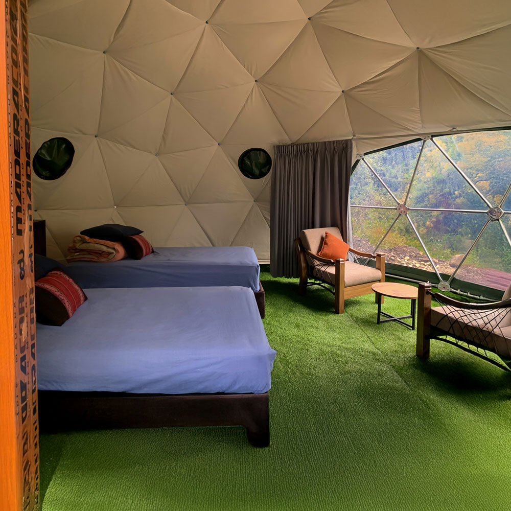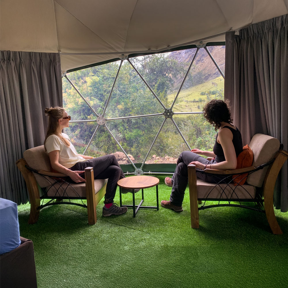 Our Mountain Sky View camp, located in Collpapampa at 2,950 m (9,678 ft), is an outstanding viewpoint overlooking the Santa Teresa Valley, where comfort meets spectacular scenery. Designed to offer a private glamping experience in close connection with nature, it allows you to unwind after the hike with a hot shower in your own dome and rest surrounded by mountains, enjoying sunrises and sunsets that become an unforgettable part of your journey.