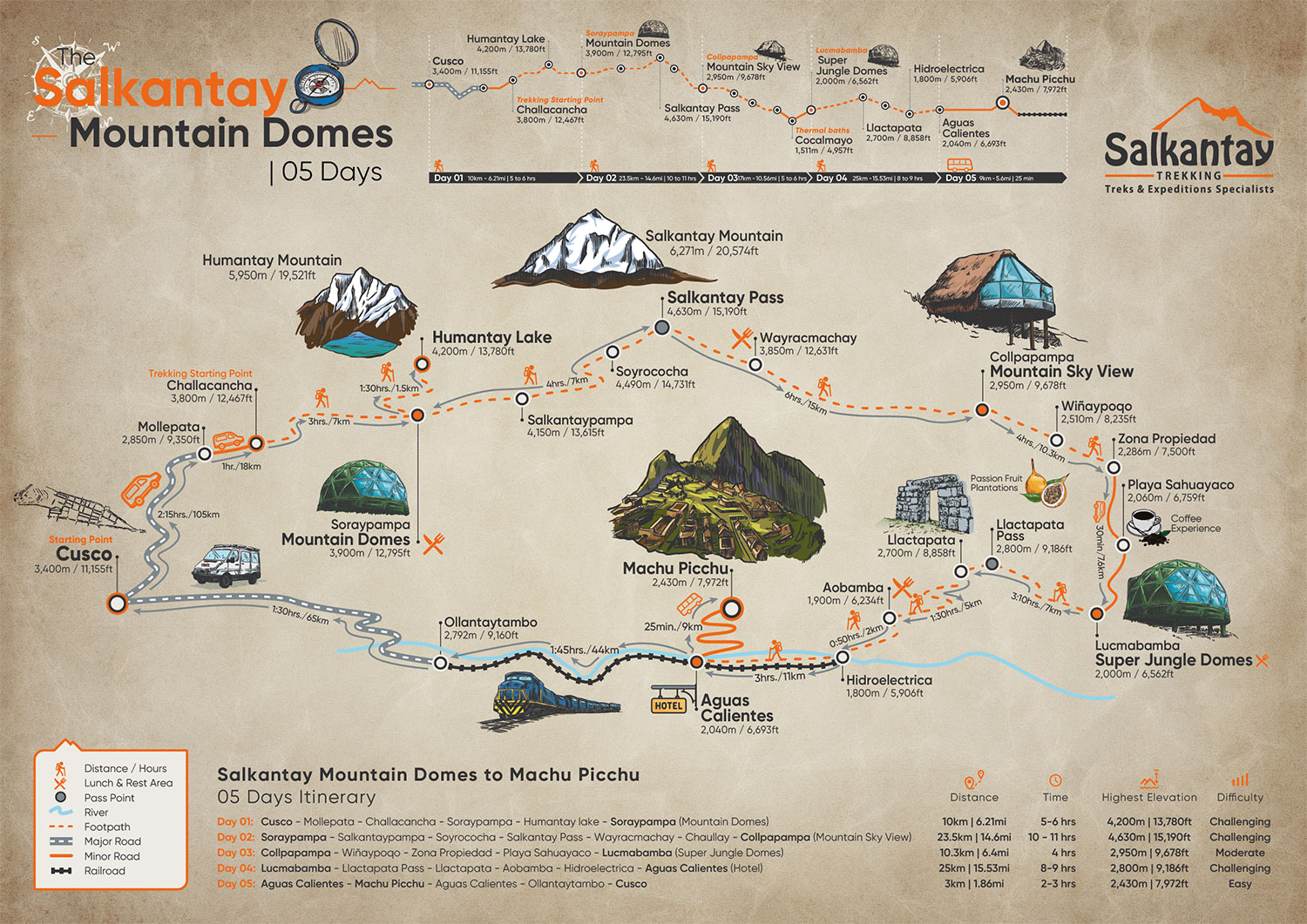 Step into one of Peru’s most extraordinary journeys: the Salkantay Mountain Domes Trek to Machu Picchu. Over five unforgettable days, move through ever-changing landscapes—from towering glaciers and turquoise lagoons to the lush embrace of the cloud forest.
