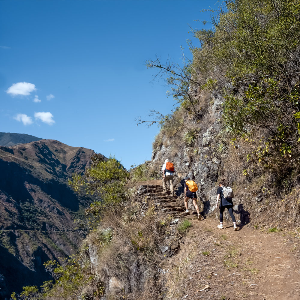Later on, we’ll cross a section of the original Inca Trail, used to connect the sacred city of Machu Picchu to the last refuge of the Incas, Vilcabamba. Here, your guide will take a moment to teach you about the Inca's most famous communication system, the Inca Trails. It’ll also be a great time for taking in the astounding views of the Huancarccasa Canyon and the majestic Salkantay Mountain in the distance.