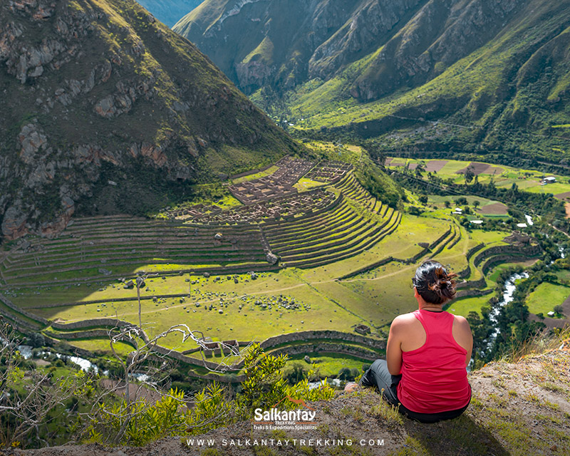 You’ll then ascend toward the final summit of the route in Phuyupatamarka (3,650 m / 11,975 ft), a mystical place above the clouds. Then, you’ll descend again for two and a half hours until we reach Intipata. This is a significant agricultural place from which you can take in the impressive panoramic lookout over the Sacred Valley of the Incas, with the Urubamba River running through the middle like a serpent.